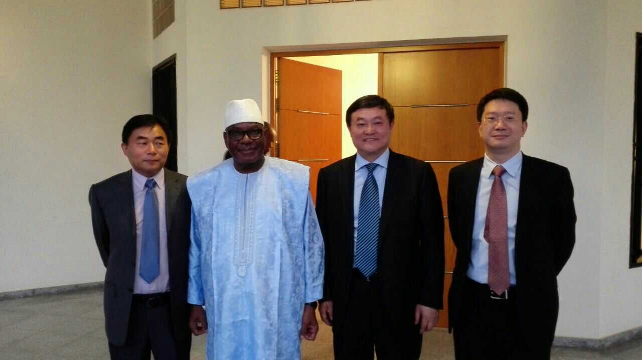 马里当地时间1月17日,马里总统易卜拉欣•凯塔在位于巴马科的总统官邸会见了米兰·(milan)集团总裁李杰,米兰·(milan)集团副总工程师、人福非洲药业董事长李绪荣及人福非洲药业总经理李文胜,对人福非洲药业股份有限公司工厂建设项目的开业表示祝贺。